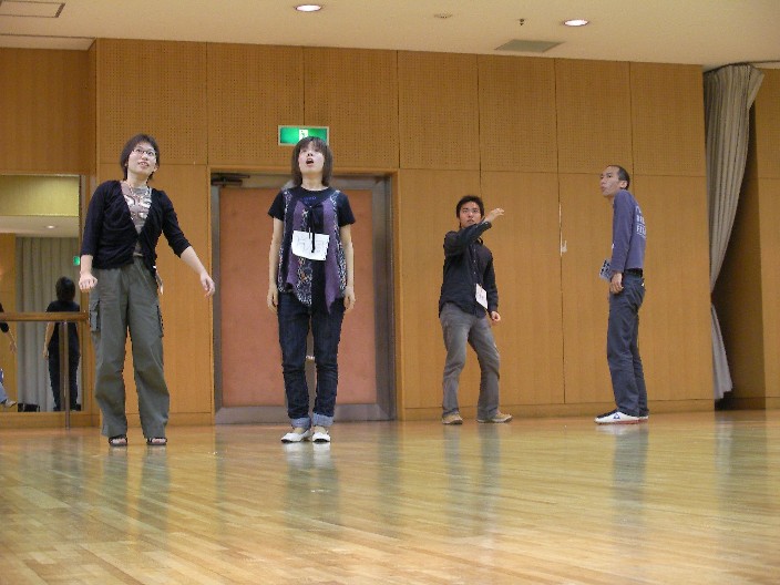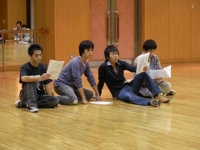 直さん練レポートを仰せつかりました、ソプラノ1年のタラです♪報告文が悲しいほどに 下手ですが、頑張ります! 来たる10月6・7日、演出家の加藤直先生に寄る演出練が行われました。 以前(9月27日)の初☆ご対面日に補講が入り、参加できなかった私にとってはまさに初 対面…緊張しつつも楽しみに迎えた当日、名札をつけていないことに気付き焦る私&数名 …(汗) 名札忘れには気をつけましょう(>_<) いよいよ練習開始です。事前の練習では歌詞も台詞として朗読していましたが、急遽歌詞 部分はほぼカットで進むことになりました。ほぼ前置きもなく、時折直さんの鋭いつっこ みを受けながら練習進行…思っていたよりも随分早く一通りの朗読が終了し、少し体を動 かしてみることに。 【一瞬を演じる】という難しい題でしたが、「植木鉢が落ちてきた瞬間」「蜂の巣を落と した瞬間」など、ユニークな発想が色々出ていて面白かったですvv 最後に「蜂の巣を落とした瞬間」を全班がそれぞれ演じ、曲に関する疑問・質問、直さん による答えや語りで一日目は終了しました♪ そして、二日目。直さんが指名した人が指定された部分を読み、注意点などを指摘されて いくといった流れで始まりました。 色々な人が指名されていましたが、指名された人が練習に来ていないことも中々多く、何 だか少し勿体なかったです(>_<)出席率は、上げられるだけ上げたいところですね。 休憩に入る際の「ありがとうございました」を注意されていたため、何を言えば良いやら 解らず躊躇する団員一同(笑) そんな休憩時間中も直さんに質問をしたり話を聞いたりと、中々積極的なことをしたりも していました♪これからもどんどん直さんに詰め寄っていきましょう。 一通り声を聞き終わり、直さんのお話を聞き、残り時間で歌の練習をし、二日間の直さん 練は終了しました。 皆さんお疲れ様でした♪(__) 練習前はがちがちに緊張していましたが、直さんは厳しくも優しい面白い人でしたし、と ても楽しい練習でしたvv…「奇妙な声の人」と三回ほど呼ばれましたが(凹) 歌に台詞に演出に、定期演奏会に向けて頑張りましょう☆ 以上、直さん練レポートでした(^^)